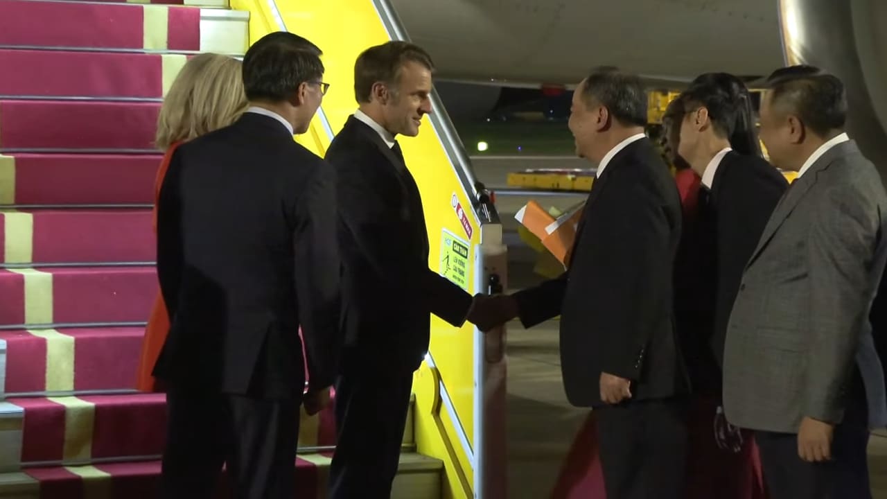 Ngày 25/5/2025, Tổng thống Pháp Emmanuel Macron đã đến Sân bay Quốc tế Nội Bài, Hà Nội, Việt Nam. Đây là chuyến thăm Việt Nam đầu tiên của một tổng thống Pháp trong gần mười năm qua. (Ảnh: Chụp màn hình video)