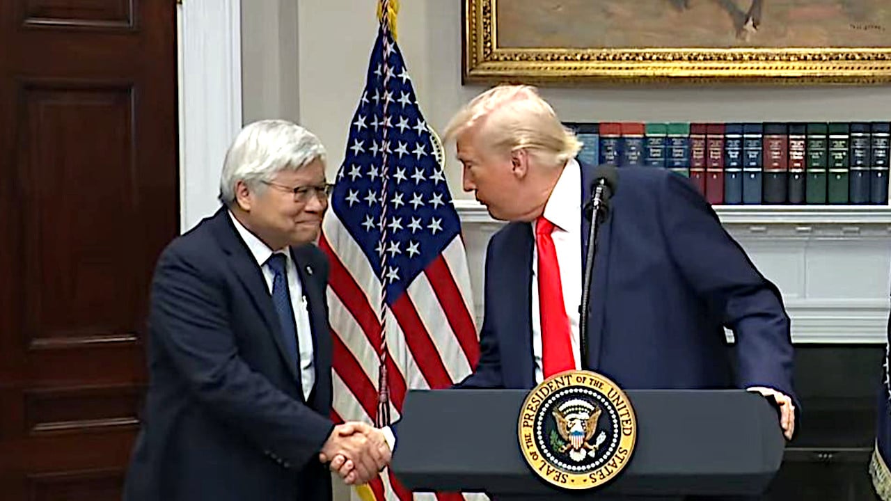 “Hôm nay hãng TSMC tuyên bố đầu tư ít nhất 100 tỷ vào Hoa Kỳ trong thời gian ngắn để xây dựng nhà máy,” ông Trump tuyên bố cùng sự hiện diện của C.C. Wei, CEO của hãng TSMC.