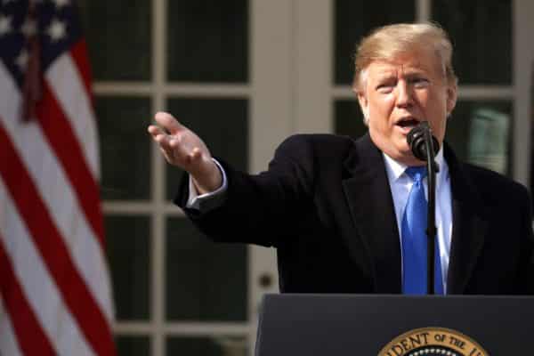 Tổng thống Mỹ Donald Trump (trái) trong sự kiện về an ninh biên giới tại Phòng Bầu dục, Tòa Bạch Ốc hôm 15/3/2019. (Ảnh: Alex Wong/Getty Images)