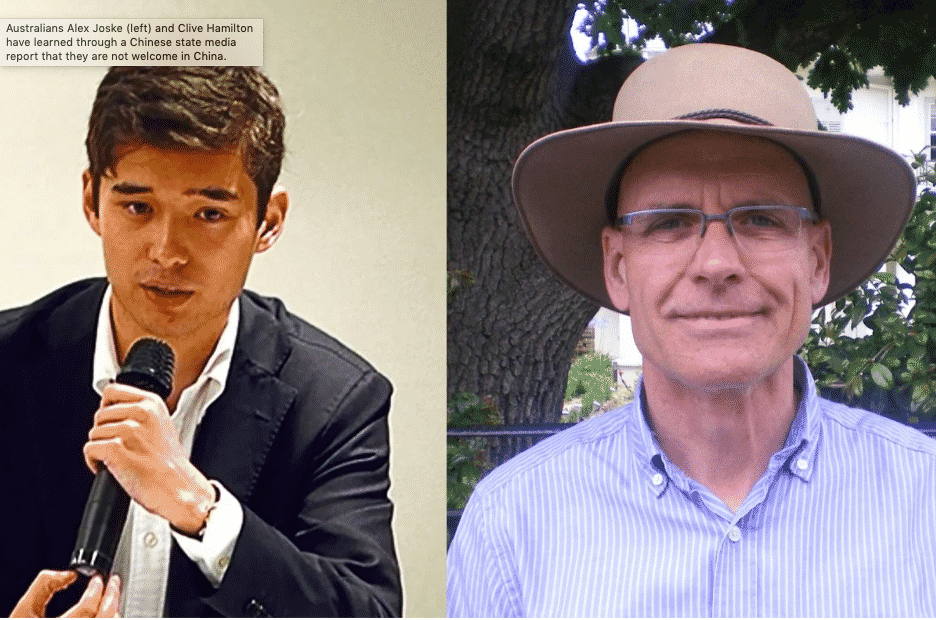 Alex Joske (trái) và Clive Hamilton đã biết được thông qua một báo cáo truyền thông nhà nước Trung Quốc rằng họ không được chào đón ở Trung Quốc