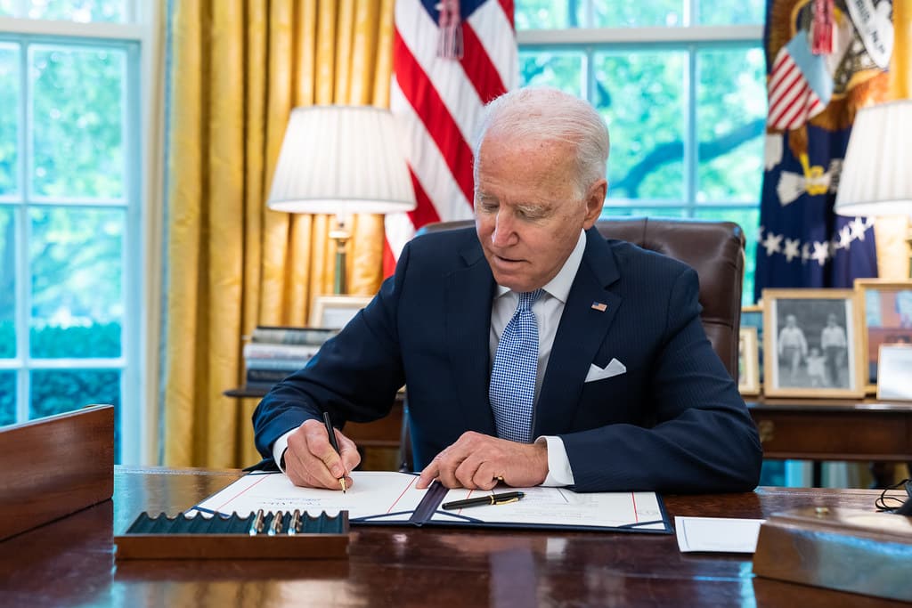 Ông Biden đã tổ chức buổi lễ ký dự luật tại Nhà Trắng. Quan khách được mời tới dự buổi lễ là các chính trị gia ủng hộ dự luật cơ sở hạ tầng của cả hai đảng.