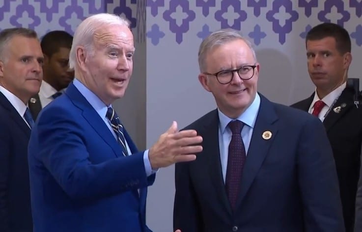 Trong một thông báo, Nhà Trắng tiết lộ, hai nhà lãnh đạo Mỹ – Úc đã gặp nhau bên lề Hội nghị thượng đỉnh Đông Á ở Campuchia. Hai bên cũng thảo luận về cuộc xâm lược Ukraine của Nga.