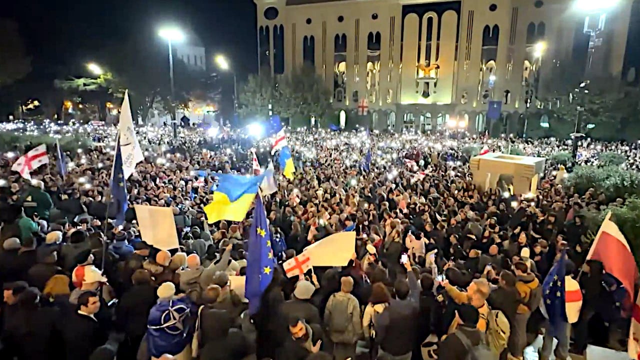 Trong khi các đảng đối lập và thân NATO/EU tại Georgia (Gruzia) tuyên bố phản đối kết quả bầu cử và một lần nữa cử hành biểu tình lớn hàng ngàn người trước cổng Quốc hội với cờ Ukraine, NATO/EU phấp phới, tuyên bố rằng đất nước của họ là nạn nhân của “hoạt động đặc biệt của Nga”, thì các chính khách phương Tây cũng hòa điệu.