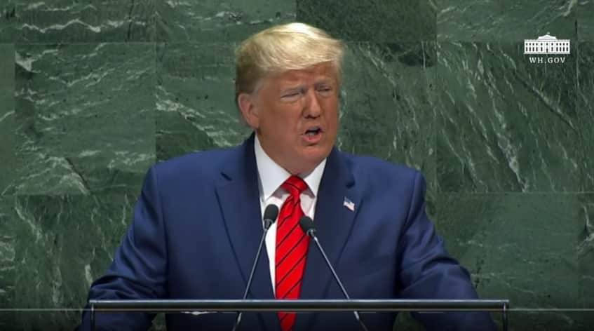 Trong bài phát biểu tại Liên Hiệp Quốc, Tổng thống Trump nói rằng việc kết nạp Trung Quốc vào WTO năm 2001 đã được chứng minh là sai lầm vì nước này đã không tự do hóa nền kinh tế và không áp dụng các cải cách như đã hứa.