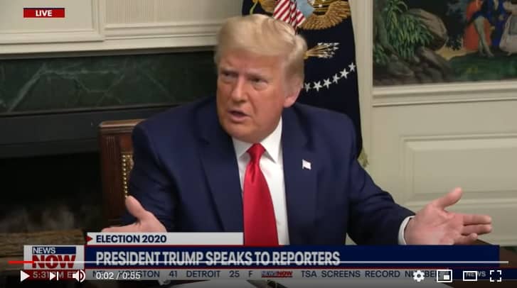 Tổng thống Trump nói: “Toàn bộ cuộc bầu cử này là gian lận. Ông Biden đã vượt qua [số phiếu] của ông Obama ở những khu vực có vấn đề bầu cử trong các bang dao động. Nhưng ông ta lại thua [số phiếu] của ông Obama ở khắp các nơi khác. Và ông ta đang vượt qua ông Obama ở những nơi có vấn đề về bầu cử.”