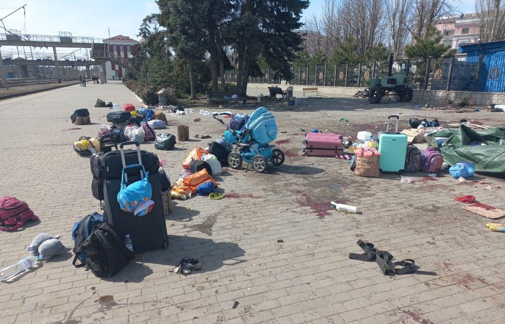 Vụ tấn công nhà ga xe lửa Kramatorsk ở Donetsk, Ukraine (Ảnh: Twitter Đại sứ quán Mỹ ở Kyiv)