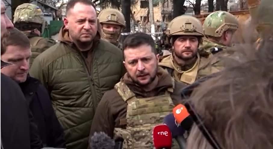 Trao đổi với truyền hình quốc gia từ thị trấn Bucha, thuộc khu vực Kyiv, Tổng thống Zelensky cho hay: “Đây là tội ác chiến tranh và sẽ được thế giới công nhận là tội ác diệt chủng”.