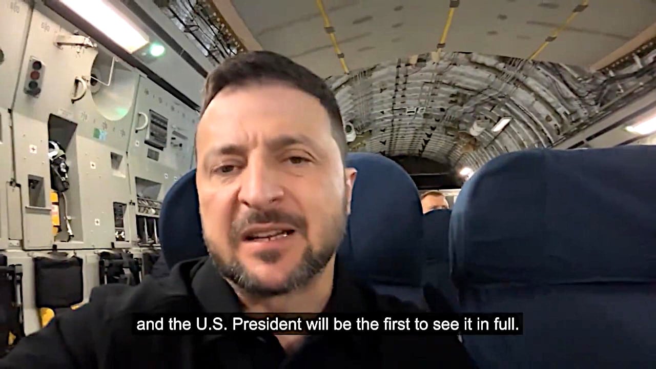 Ông nói trong một video do ông tự quay khi trên máy bay, rằng ông sẽ trình bày “kế hoạch chiến thắng”, một phương án đem lại “hòa bình đích thực” cho Ukraine, và “tổng thống Mỹ là sẽ là người đầu tiên được xem phiên bản đầy đủ” của kế hoạch này.