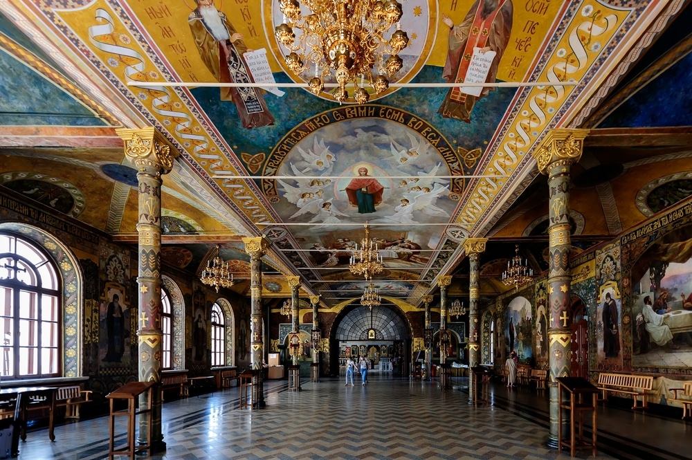 Tu viện Các hang động (pechersk = hang động) nhìn ra sông Dnipro, được thành lập vào thế kỷ 11, và là Di sản Thế giới được UNESCO công nhận.