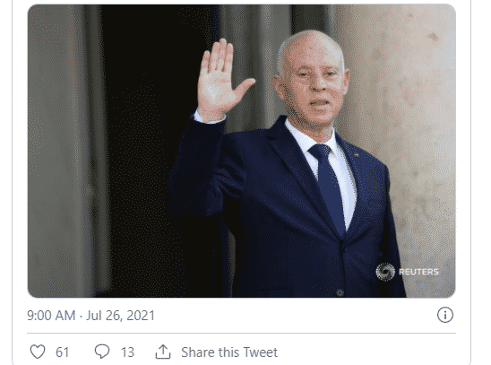 Trong tuyên bố phát đi vào cuối ngày Chủ Nhật (25/7), ông Saied đã viện dẫn hiến pháp để bãi nhiệm Thủ tướng Hichem Mechichi và ban hành chỉ thị đình chỉ hoạt động của quốc hội trong 30 ngày. Tổng thống nói ông sẽ điều hành đất nước cùng với một thủ tướng mới.