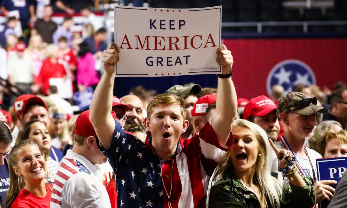 Người ủng hộ Tổng thống Trump tại cuộc tập trung tại thành phố Johnson, bang Tennessee hôm 1/10. (Ảnh: Charlotte Cuthbertson/The Epoch Times)