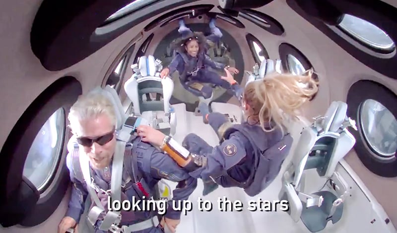 Sau khi Unity được tách khỏi máy phát, ông Branson và các thành viên phi hành đoàn khác có thể cởi dây an toàn vào thời điểm thích hợp để trải nghiệm cảm giác không trọng lượng. Họ cũng có thể nhìn trái đất từ hàng chục ô cửa sổ trên tàu vũ trụ.