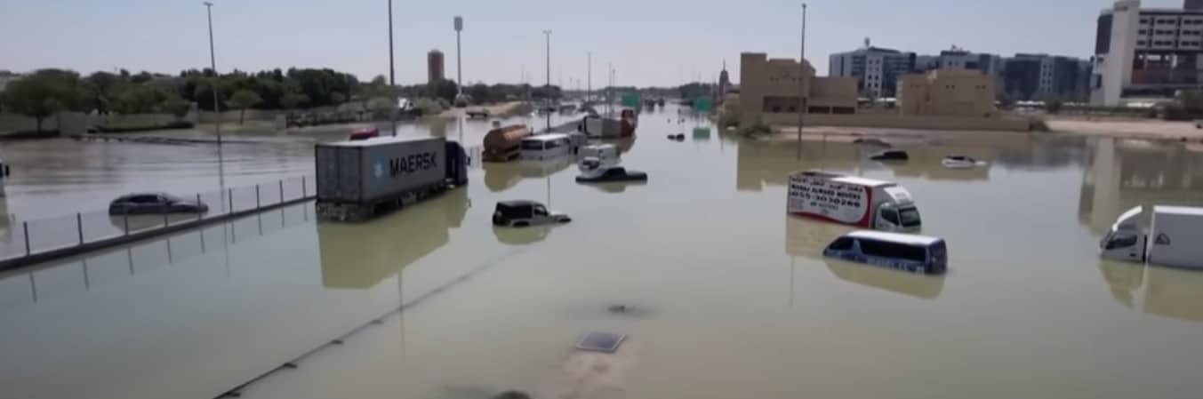 Giữa tháng 4 vừa qua, những cơn giông lớn đã gây ra trận mưa lớn nhất từng ghi nhận tại UAE, khiến các tuyến đường cao tốc chính và Sân bay quốc tế Dubai bị ngập lụt.