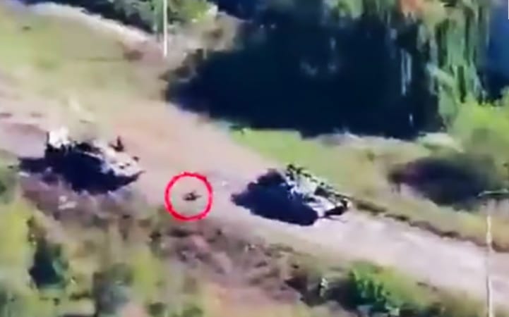 UAV quay cảnh xe tăng Nga chạy trốn, binh sĩ rơi xuống đất