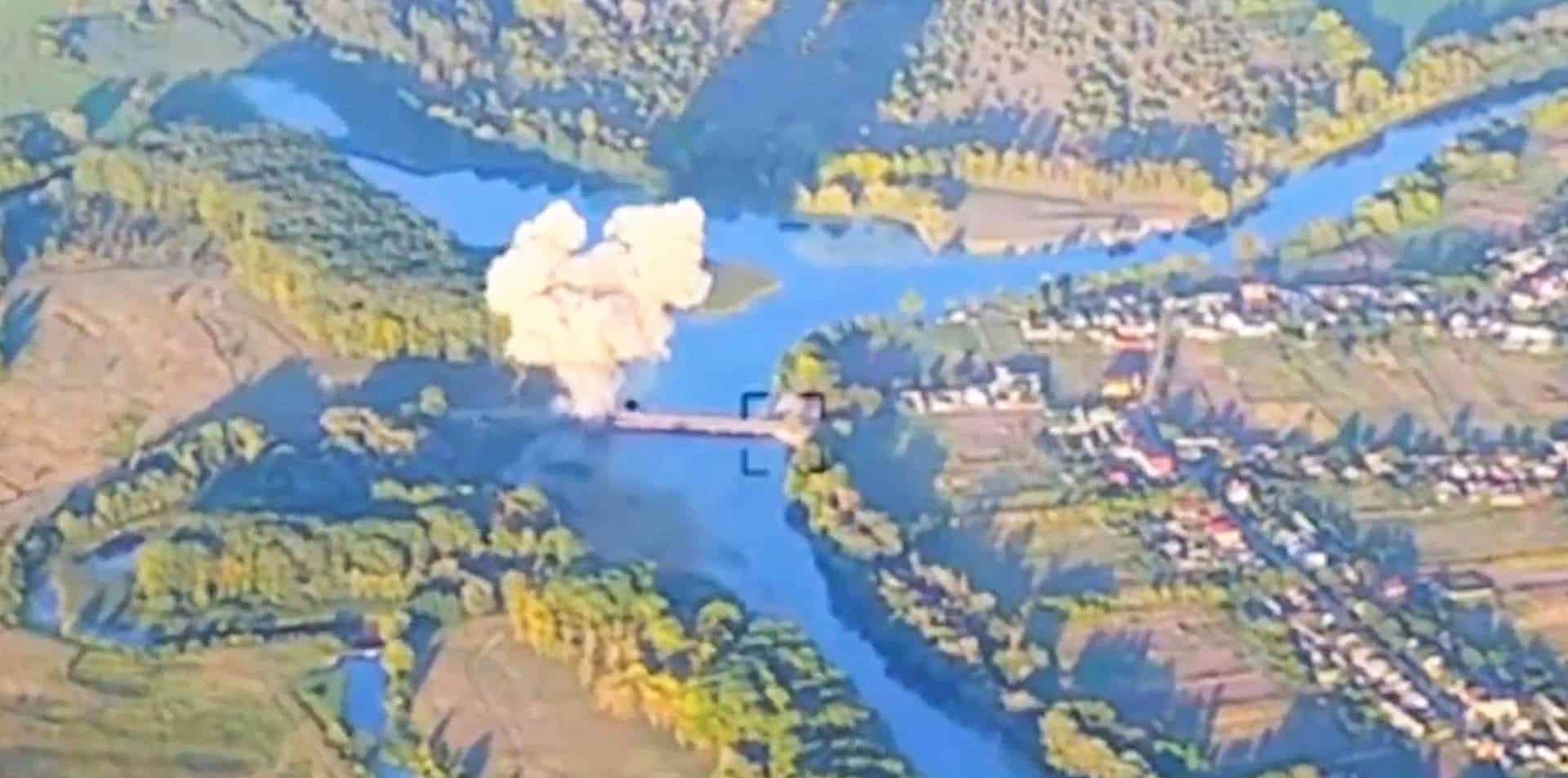 Cầu bị của Nga ở tỉnh Kursk bị drone của Ukraine đánh nổ (ảnh trích từ video trên mạng X)