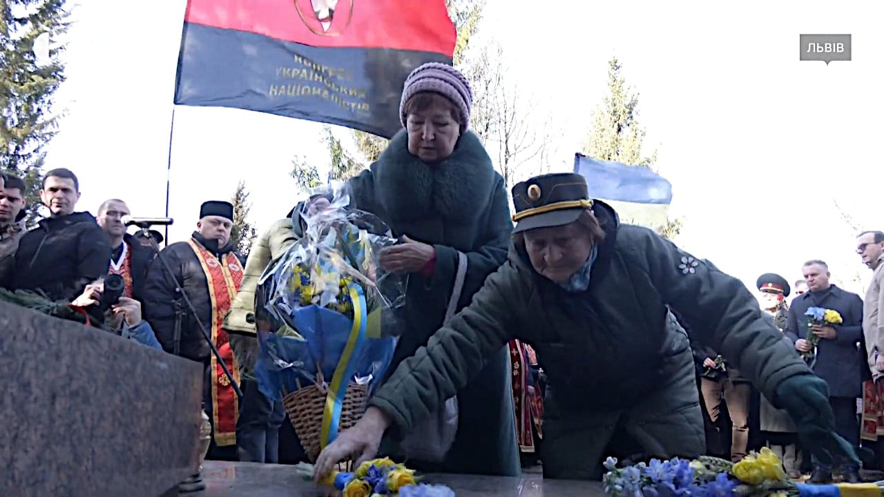 Trong video của truyền hình Suspilne nói trên, có thể nhìn thấy những lá cờ đỏ đen của quân UPA theo phát xít này cùng với những lá quốc kỳ xanh vàng, cũng có thể nghe thấy nhạc quốc ca của Ukraine, cùng các cảnh phát biểu và đặt hoa.