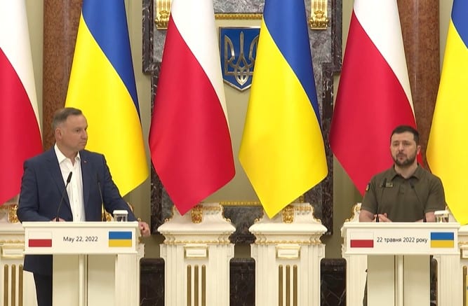 Tổng thống Ukraina Volodymyr Zelenskiy và Tổng thống Ba Lan Andrzej Duda đã ca ngợi sự hợp tác ngày càng tăng giữa hai quốc gia trong cuộc họp ở Kyiv hôm 22/5, với việc ông Duda khẳng định sự ủng hộ của Warsaw với nước láng giềng thân thiết.