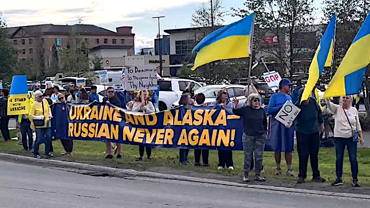 Video trên mạng xã hội, một nhóm biểu tình, hẳn là từ phe Ukraine. Có thể thấy biểu ngữ “Ukraine và Alaska sẽ không bao giờ trở lại là của Nga”. Năm đó Mỹ đã trả một lượng tiền thì mới có thể có được Alaska. Không phải bằng ngoại giao, không phải bằng vũ lực, mà là chi tiền để mua. Một vụ mua bán rất có lời cho Mỹ. Không rõ là những người Ukraine so sánh Ukraine với Alaska trong trường hợp này là ý tứ thế nào: