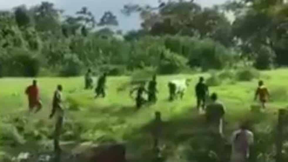 Reuters cũng đăng tải một video lấy từ mạng xã hội mô tả cảnh hàng chục người đàn ông chạy, săn đuổi một con bò trên đồng cỏ… và đánh cho gia súc dùng làm sức kéo này đến chết để mổ lấy thịt.