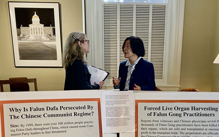Đầu tháng 4 vừa qua, người tập Pháp Luân Công ở bang Vermont đã dựng bảng trưng bày và lập bàn thông tin tại Tòa nhà Quốc hội Bang ở Montpelier để thông tin cho mọi người về cuộc đàn áp Pháp Luân Công đang diễn ra ở Trung Quốc, đồng thời vạch trần tội ác cưỡng bức thu hoạch nội tạng từ tù nhân lương tâm còn sống do Đảng Cộng sản Trung Quốc hậu thuẫn. Nhiều nhà lập pháp của bang đã đến để nói chuyện, một số đã ký tên thỉnh nguyện kêu gọi chấm dứt cuộc đàn áp và chấm dứt nạn thu hoạch nội tạng sống.