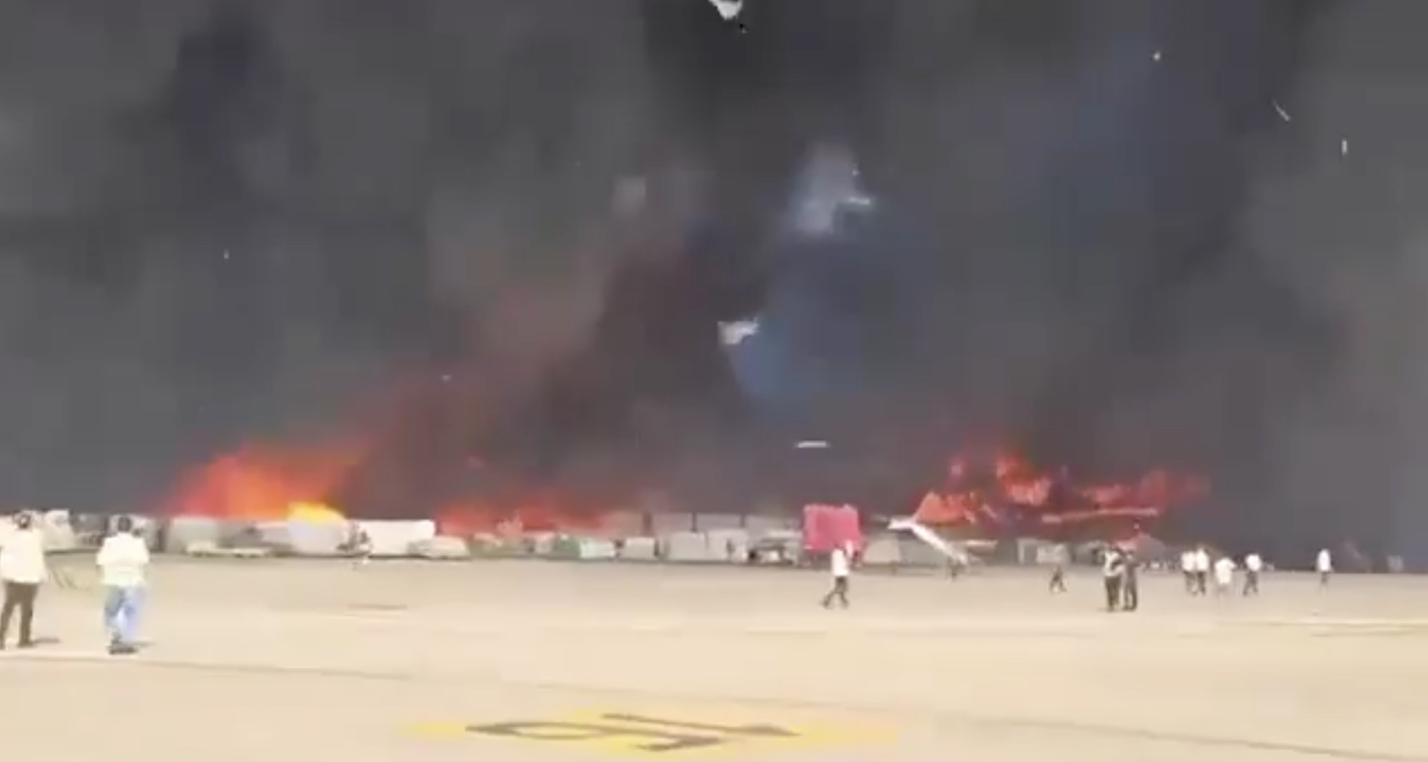 Theo giới chức địa phương, vào khoảng 14h15 (giờ địa phương), đám cháy bùng lên từ khu vực gần cổng số 8 nhanh chóng lan rộng ra khu chứa hàng hóa nhập khẩu, tạo thành cột khói đen khổng lồ bao trùm toàn bộ sân bay.