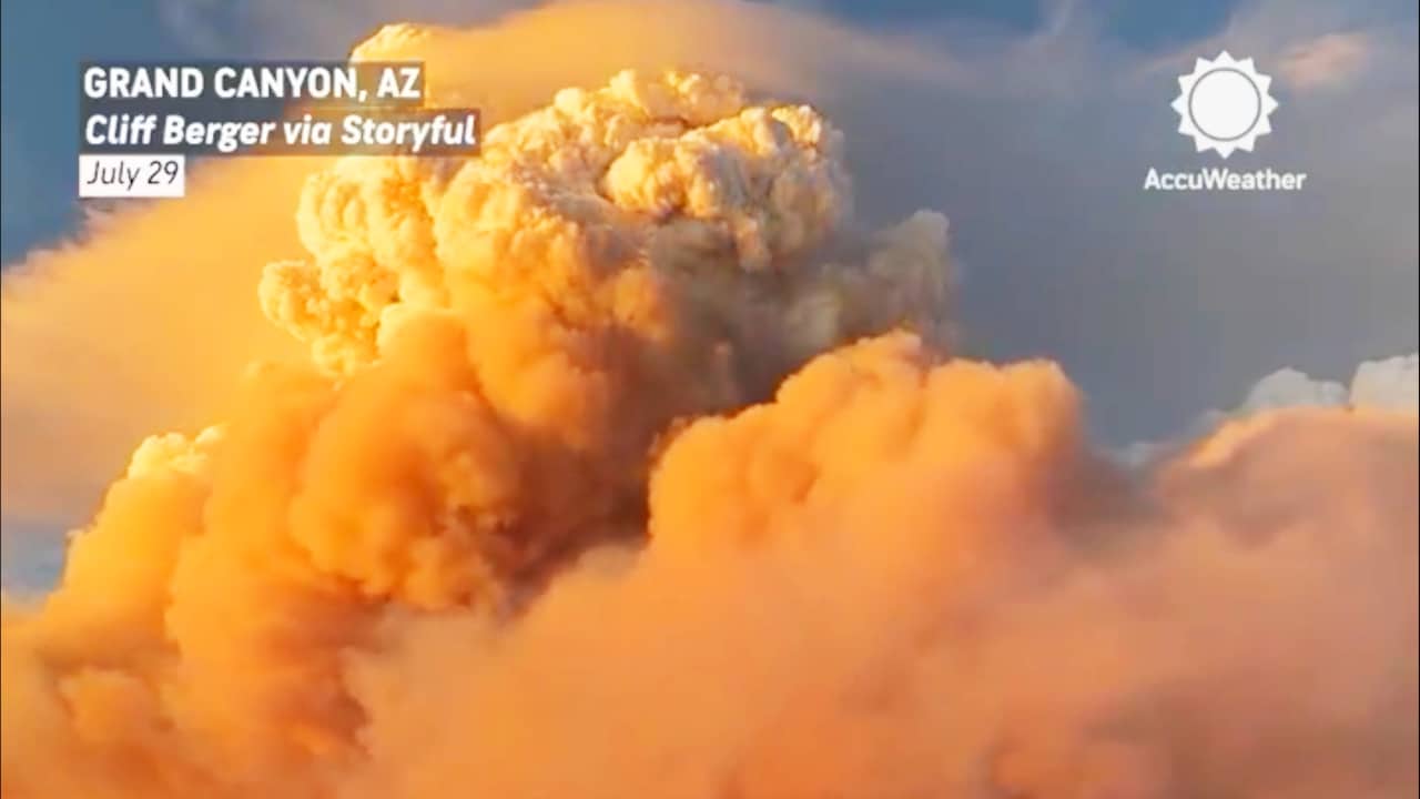 A dramatic pyrocumulus cloud, or fire cloud, formed as the large Dragon Bravo Fire burned along the Grand Canyon’s North Rim in Arizona this week.