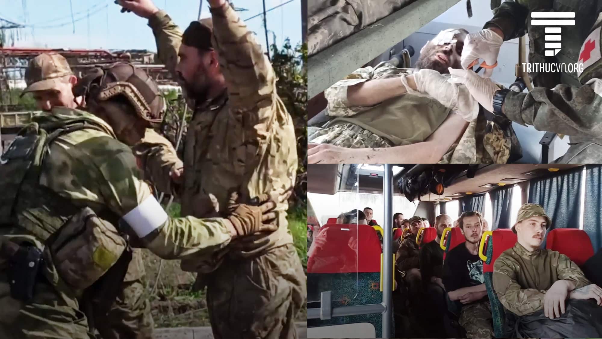 Bộ Quốc phòng Nga ngày 17/05 công bố một video cho thấy các binh sĩ Ukraine đã rời khỏi nhà máy thép Azovstal, Mariupol. Một số được khiêng trên cáng, trong khi những người khác giơ tay cao để quân đội Nga khám xét.
