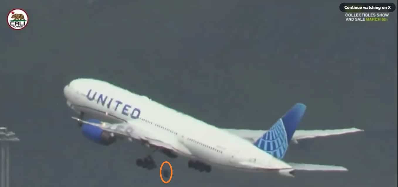 Theo hãng United Airlines, máy bay Boeing 777 có 6 bánh bên mỗi bộ truyền động hạ cánh chính và được thiết kế để hạ cánh an toàn nếu một số bánh bị hư hại hoặc rơi.