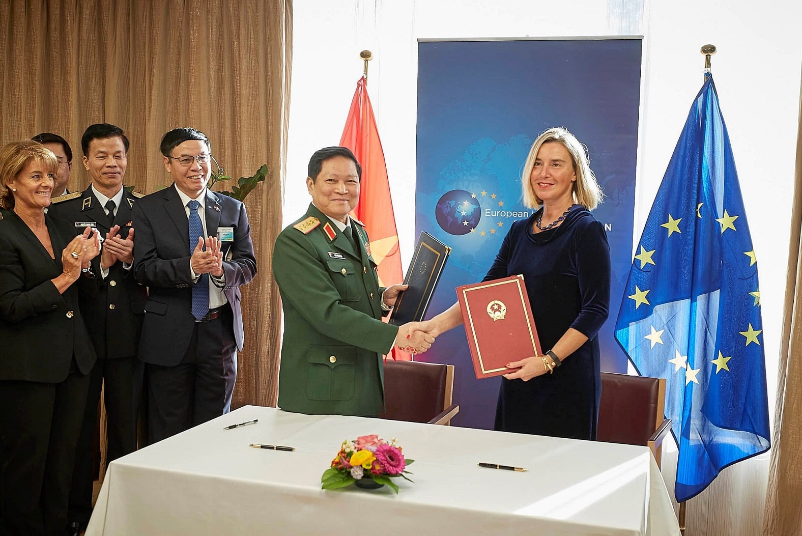 Hôm 17/10, Việt Nam trở thành quốc gia Châu Á thứ hai ký thỏa thuận khung thúc đẩy hợp tác quốc phòng với Liên minh Châu Âu EU.