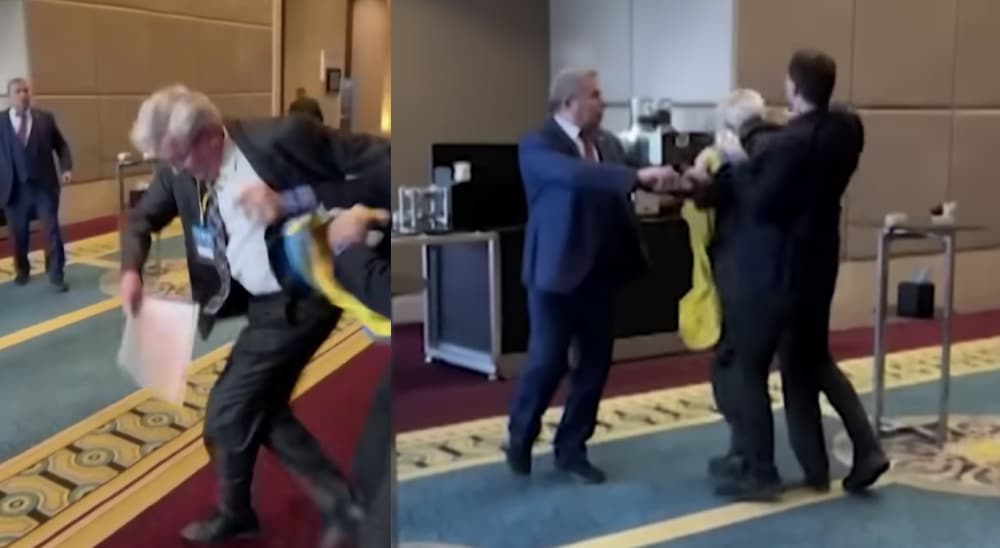 Kết quả là ông ta bị đấm vào mặt bởi Olesandr Marikovski, một nhà ngoại giao Ukraine.