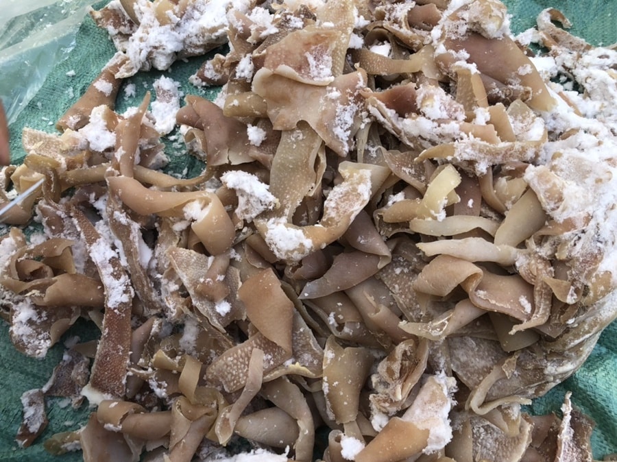 1,4 tấn bì lợn đông lạnh, đang rã đông có dấu hiệu bị phân hủy, bốc mùi hôi thối vừa được phát hiện trên xe tải vận chuyển từ Hưng Yên vào Thanh Hóa để tiêu thụ.