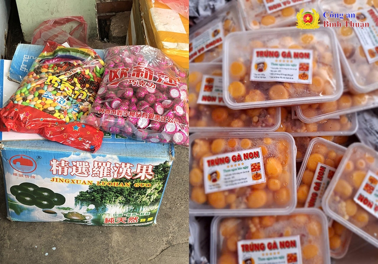 Cơ sở này bị phát hiện đang trữ 27 chủng loại hàng hóa, khoảng 0,4 tấn, trong đó có 124 kg bánh, kẹo, mứt, hạt sấy, … xuất xứ Trung Quốc, Mỹ, Đức … và 268 kg thực phẩm đông lạnh (trứng gà non, vú heo, vó bò, bắp giò, nai một nắng, Pa tê, …) không nhãn mác, không ngày sản xuất và hạn sử dụng.
