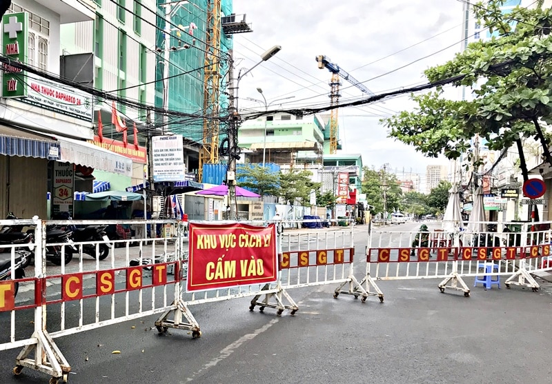 Rào chắn phong tỏa đầu đường Hải Phòng, quận Hải Châu, Đà Nẵng, ngày 31/7. (Ảnh: P.T)