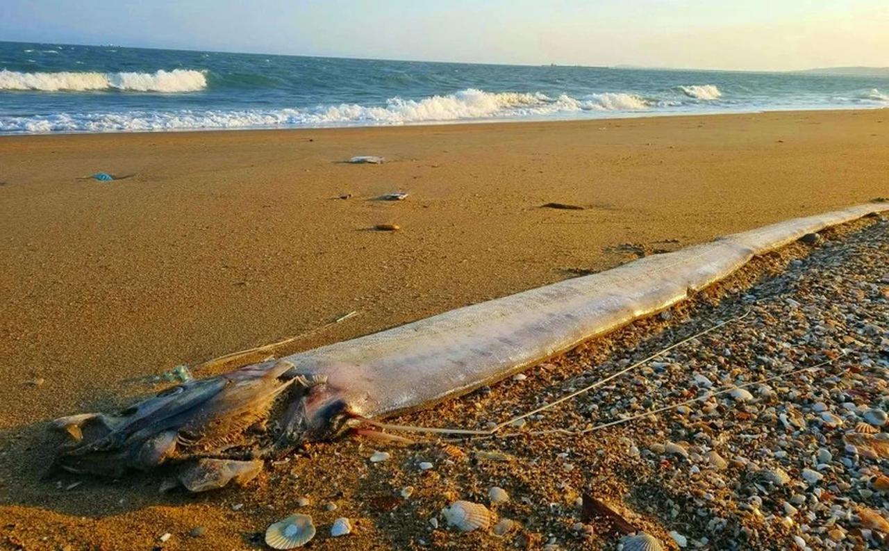 Trước đó, ngày 22/3, tại khu vực bãi biển gần Dinh Thầy Thím, xã Tân Hải, một con cá mái chèo khác dài khoảng 4 m cũng được phát hiện.