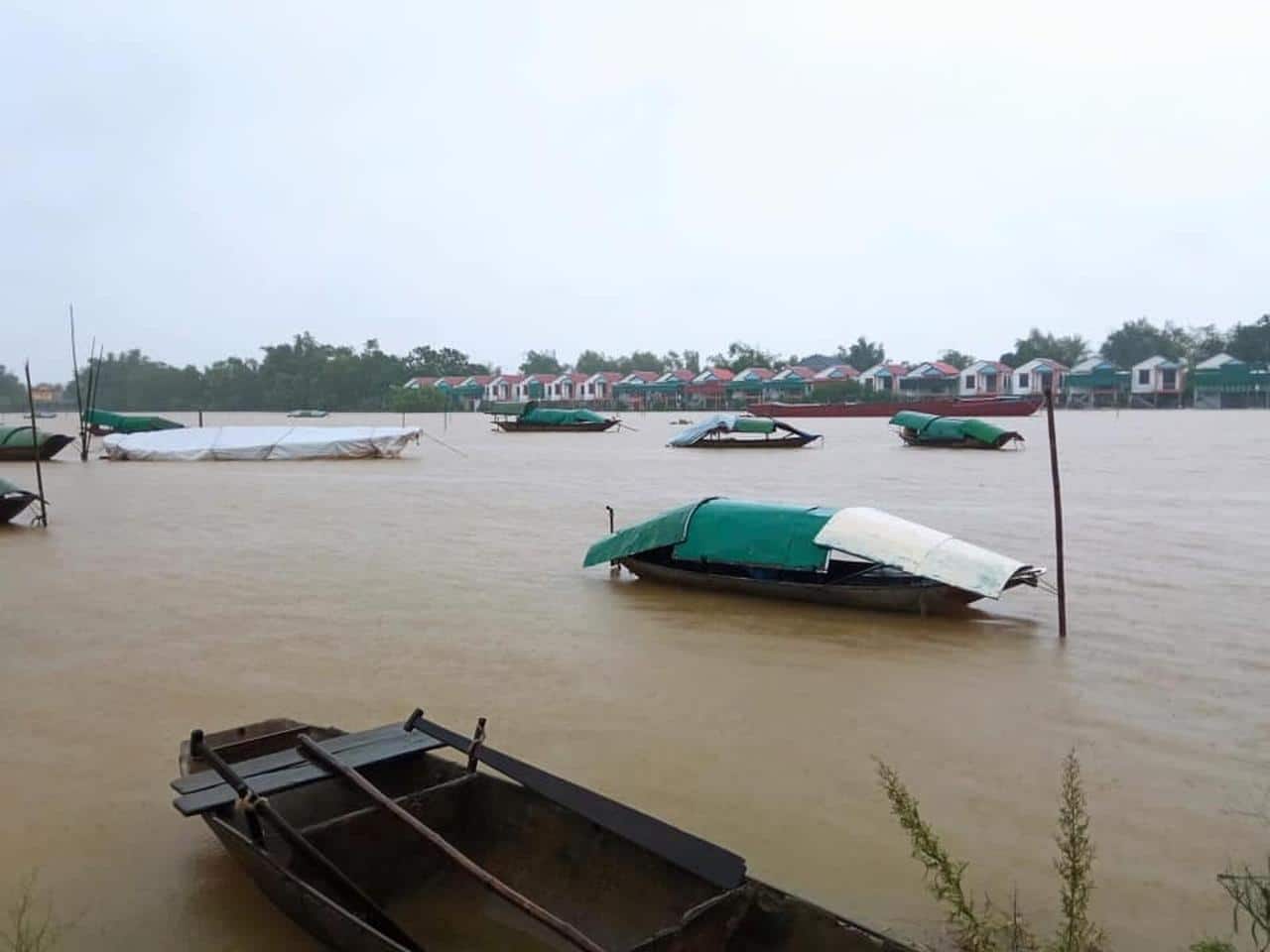 Vùng ngoài đê Đức Thọ, Hà Tĩnh ngập trong nước. (Ảnh: Thơ Nguyễn/Facebook)