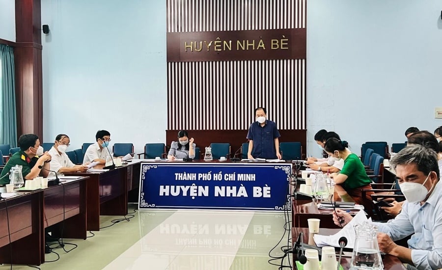 Sở Y tế TP.HCM và HCDC họp với giới chức huyện Nhà Bè khi số ca COVID-19 đang tăng nhanh tại đây, sáng 7/11. (Ảnh: HCDC)