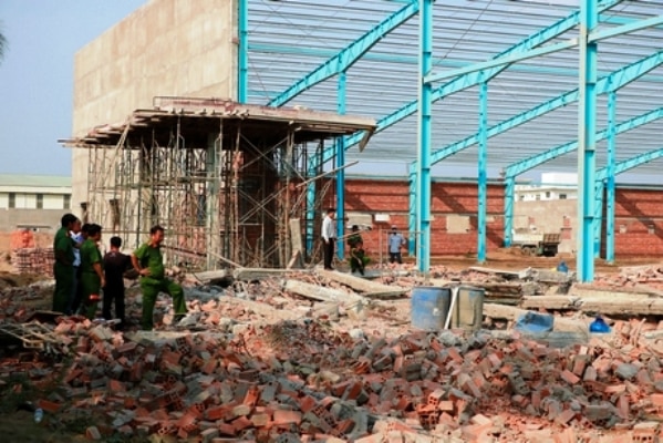 Tại thời điểm trên, một bức tường có chiều ngang hơn 30m và cao hơn 10m bất ngờ đổ sập khiến nhiều công nhân bị thương, vong.