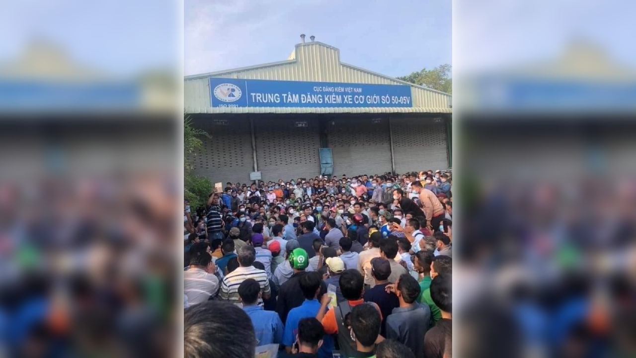 Hàng nghìn người phải xếp hàng từ 2-3h sáng ở trước cổng Trung tâm Đăng kiểm. (Ảnh: dẫn qua Nguyễn Hoàng Hà/Facebook)