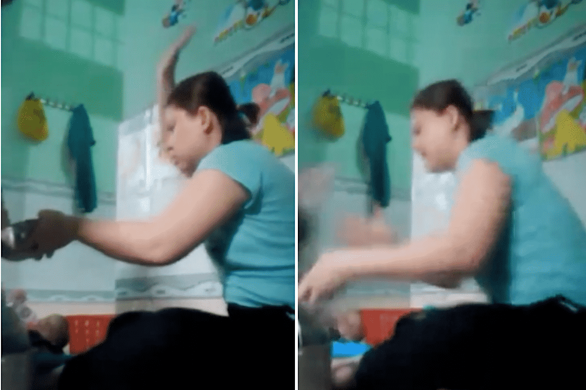 Trong clip, bảo mẫu vừa đút thức ăn cho một bé gái mặc váy màu vàng vừa dùng một cây gậy xanh đánh bé khiến bé sợ hãi, khóc toáng. Một bé gái khác bị bảo mẫu tát mạnh vào vùng đầu, má hai lần khiến bé ngã bật ra sàn. Trong lúc bảo mẫu này đánh bé, có một người phụ nữ đi qua đi lại nhưng không lên tiếng hay có hành động gì can thiệp.