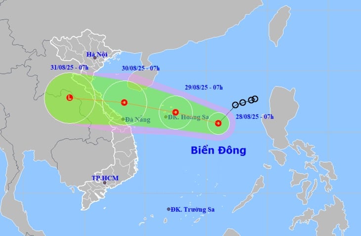 Ngày 28/8, Trung tâm Dự báo Khí tượng Thủy văn Quốc gia cho biết, tâm áp thấp nhiệt đới lúc 7h sáng cùng ngày ở khoảng 15,7 độ Vĩ Bắc, 116,0 độ Kinh Đông, trên vùng biển phía Đông khu vực Bắc Biển Đông. Sức gió mạnh nhất đạt cấp 6-7 (39-61 km/h), giật cấp 9, di chuyển theo hướng Tây Nam với tốc độ 15 km/h.