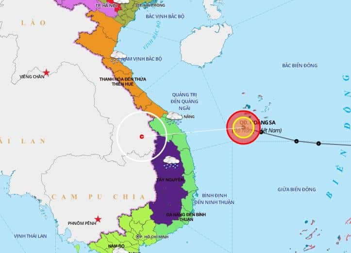 Theo bản tin khẩn cấp phát đi từ Trung tâm Dự báo Khí tượng Thủy văn Quốc gia Việt Nam, hồi 10 giờ ngày 16/10, vị trí tâm áp thấp nhiệt đới ở khoảng 15,6 độ Vĩ Bắc; 111,5 độ Kinh Đông, ngay trên vùng biển phía Tây Nam quần đảo Hoàng Sa, cách bờ biển các tỉnh từ Đà Nẵng đến Bình Định khoảng 290km về phía Đông. Sức gió mạnh nhất vùng gần tâm áp thấp nhiệt đới mạnh cấp 6 (40-50km/giờ), giật cấp 8.
