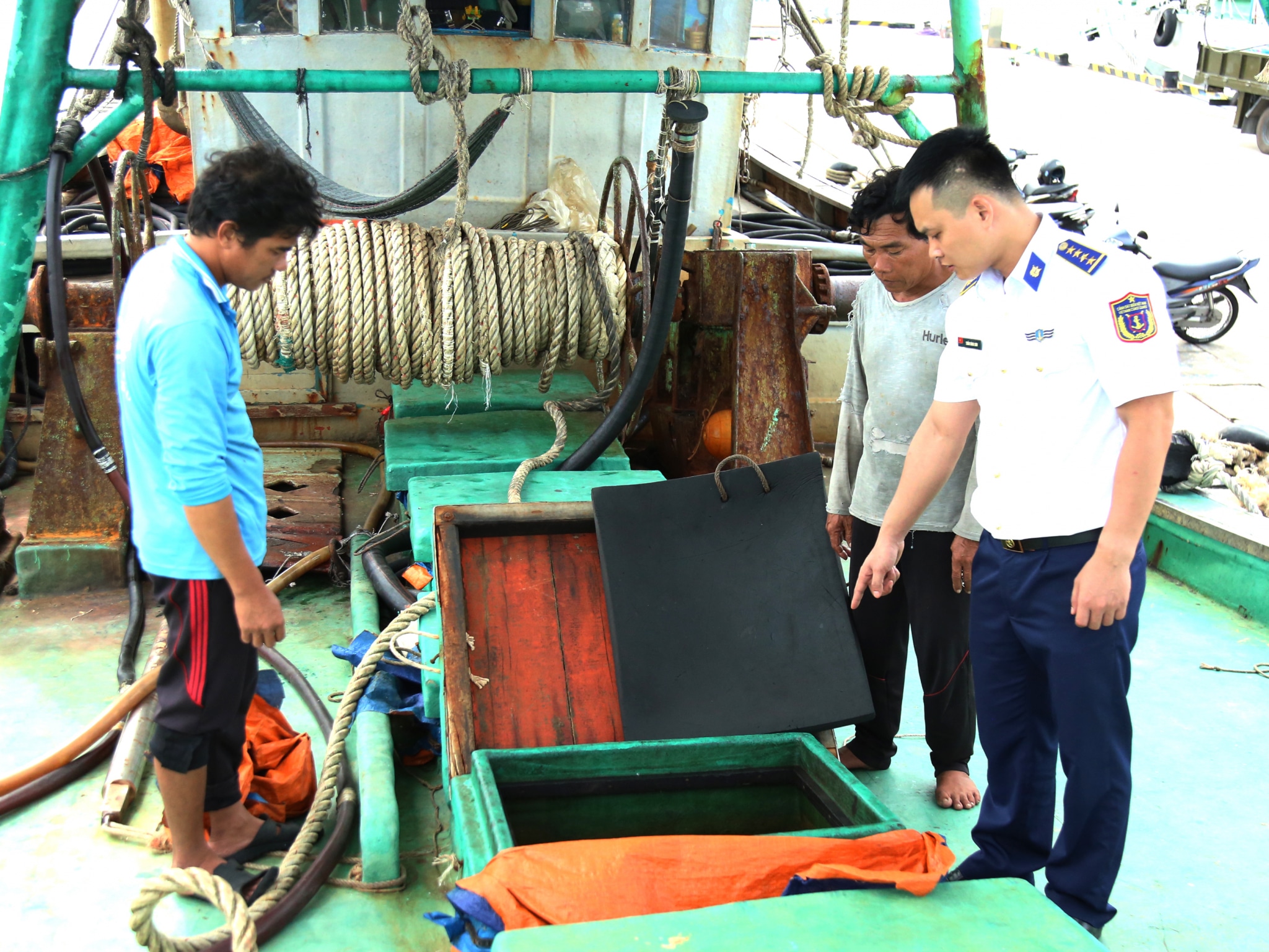 Qua kiểm tra cho thấy phương tiện này do ông Hoàng Văn Lượm (SN 1981, quê Kiên Giang) làm thuyền trưởng, đang vận chuyển khoảng 30.000 lít dầu DO nhưng không chứng minh được nguồn gốc hàng hóa. Cả thuyền trưởng Lượm cùng 5 thuyền viên trên tàu cũng không có bằng cấp, chứng chỉ chuyên môn.