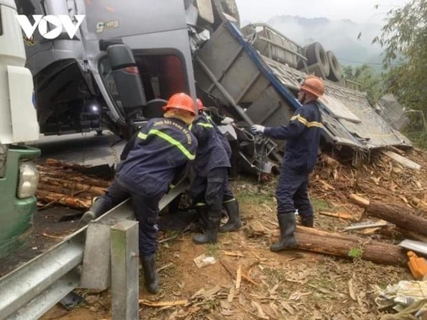 Bắc Kạn: Xe tải chở gỗ bị lật khiến 3 người thương vong