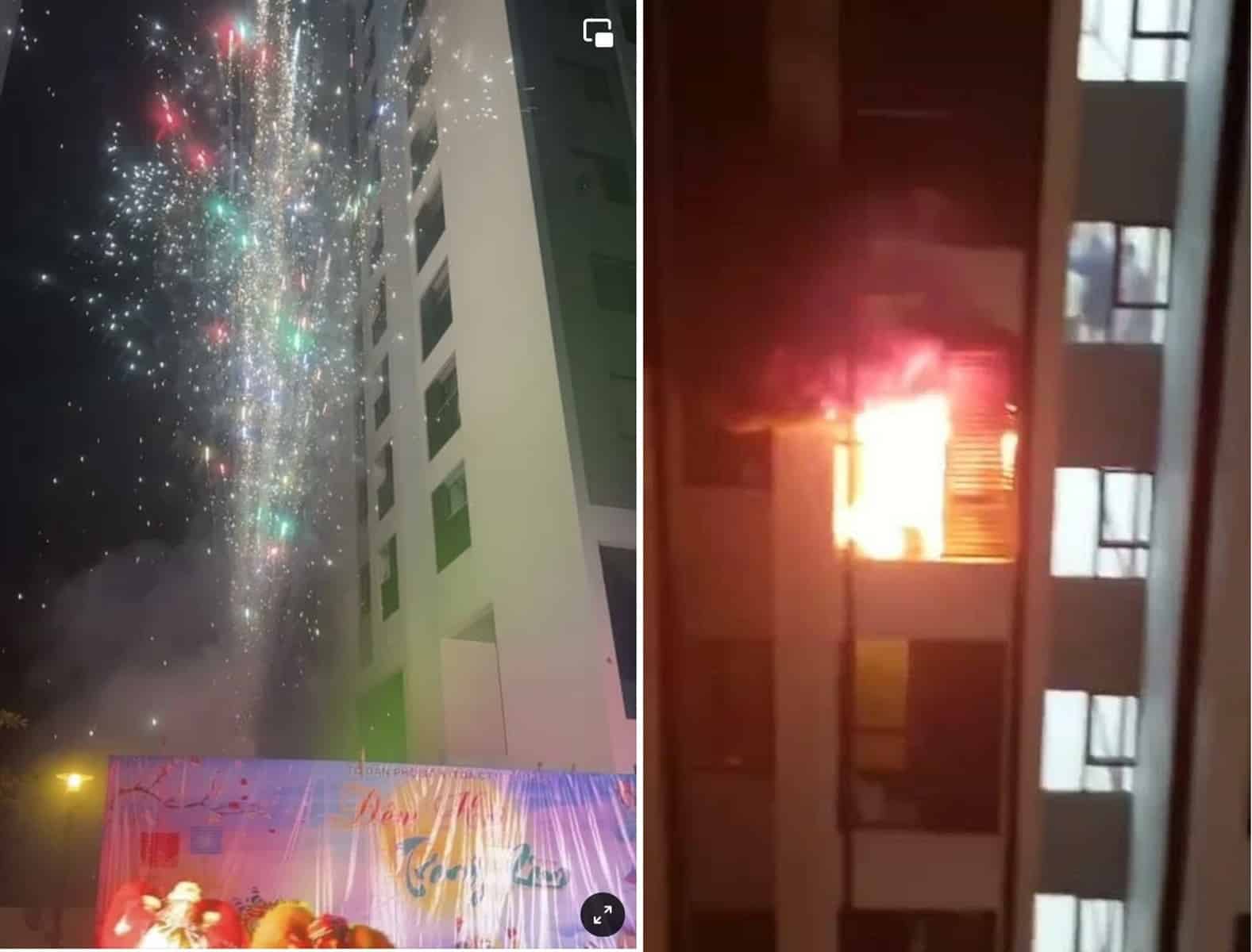 Khi pháo hoa được bắn trên sân chung cư, tàn lửa được cho là đã bén vào quần áo phơi bên ngoài ban công khiến một căn chung cư tại tầng 10 bốc cháy.