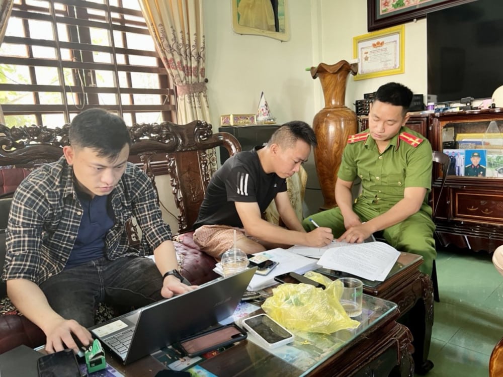 Cơ quan công an khám xét nơi ở của Trần Quang Nam, người điều hành băng nhóm cá độ bóng đá online. (Ảnh: congan.hatinh.gov.vn)