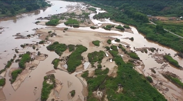 Khi mực nước hạ xuống, cồn cát dưới lòng sông đã lộ ra ở nhiều khu vực của sông Mekong thuộc huyện Muang, khiến việc di chuyển hàng hóa và đánh bắt cá trở nên khó khăn.