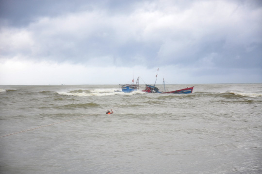 Tại Quảng Ngãi, chiều 12/9, 2 tàu cá của ngư dân đang trên đường chạy về cửa Đại trú bão thì bị mắc cạn, sóng đánh chìm tàu, 6 thành viên trên 2 tàu được người dân ra cứu, đưa về bờ an toàn.