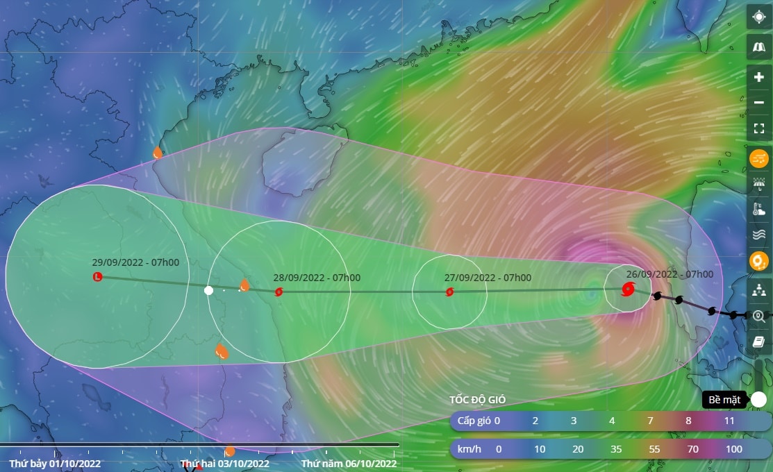 Cập nhật lúc 7h sáng 26/9, TS. Nguyễn Ngọc Huy, chuyên gia Biến đổi khí hậu và Giảm thiểu thiên tai cho biết sau khi đi ra khỏi đất liền của Philippines, bão đã yếu đi rất nhiều so với trước khi bão đổ bộ vào đất liền của Philippines, cấp gió vào khoảng 120-130km/h, giật 140km/h.