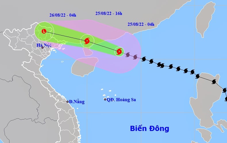 Cập nhật lúc 4h sáng ngày 25/8, Trung tâm Dự báo Khí tượng thủy văn quốc gia cho hay tại thời điểm trên, vị trí tâm bão ở trên khu vực phía Bắc Biển Đông, cách bán đảo Lôi Châu (Trung Quốc) khoảng 290km về phía Đông. Sức gió mạnh nhất vùng gần tâm bão mạnh cấp 11 (103-117km/giờ), giật cấp 14. Bán kính gió mạnh cấp 6, giật cấp 8 khoảng 170km tính từ tâm bão.
