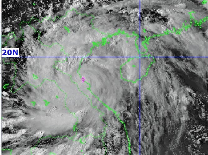 Theo Trung tâm Dự báo Khí tượng Thủy văn Quốc gia, hồi 16h ngày 25/8, vị trí tâm bão ở khoảng 18.4 độ Vĩ Bắc; 106.0 độ Kinh Đông, trên vùng bờ biển khu vực Nghệ An – Hà Tĩnh.